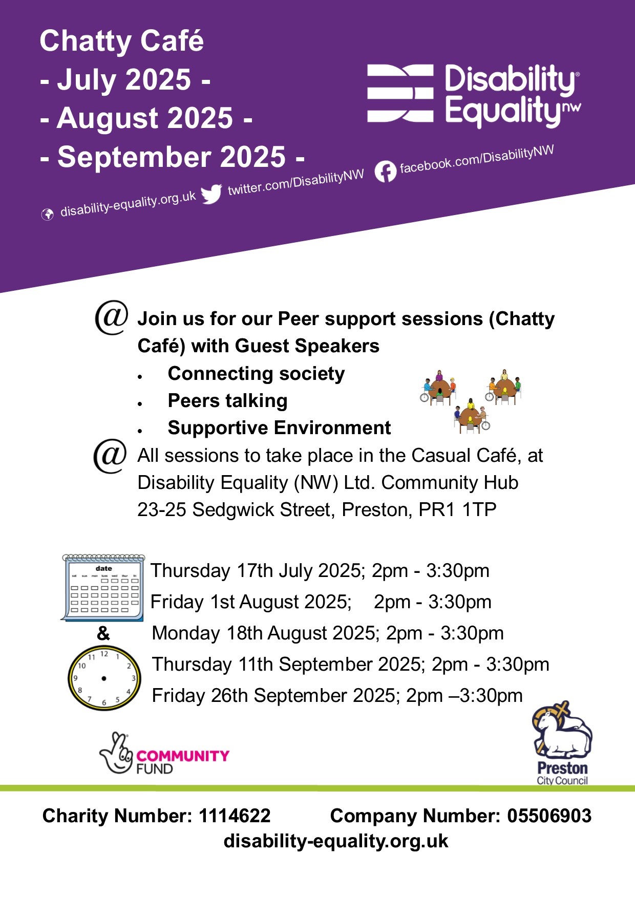 des@disability-equality.org.uk or Community hub team on 01772 558863.