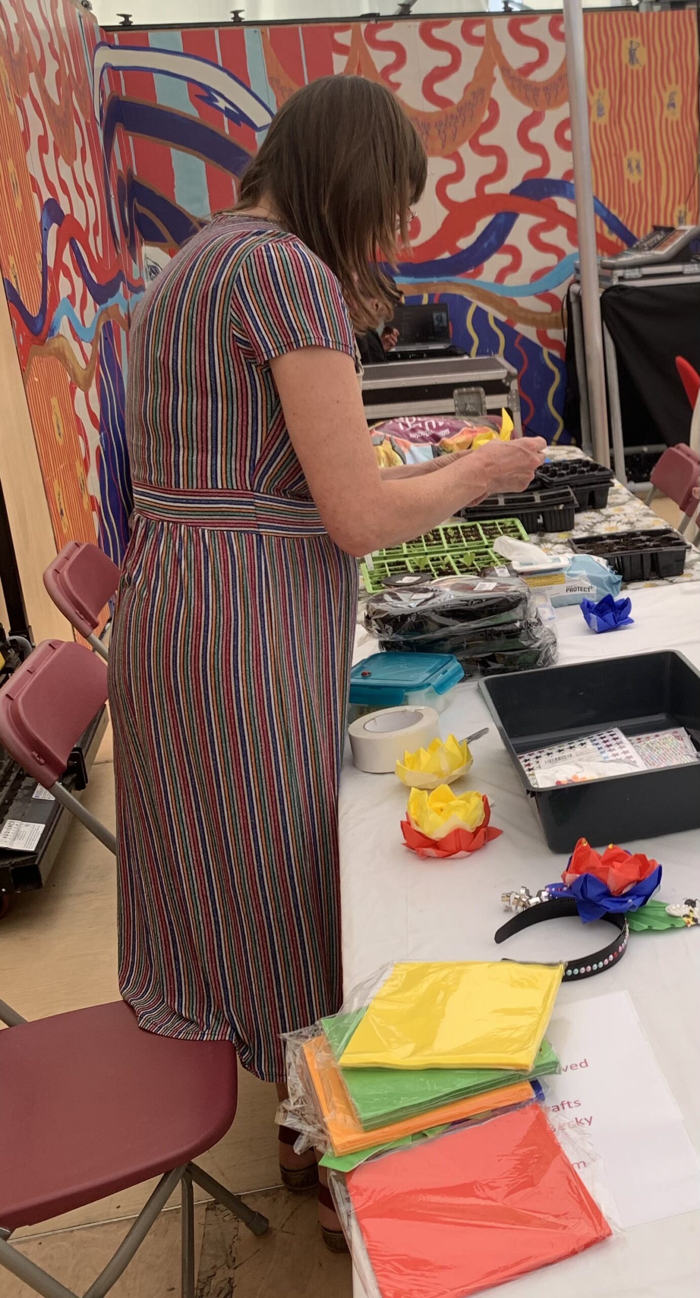 - Becky preparing for the craft session