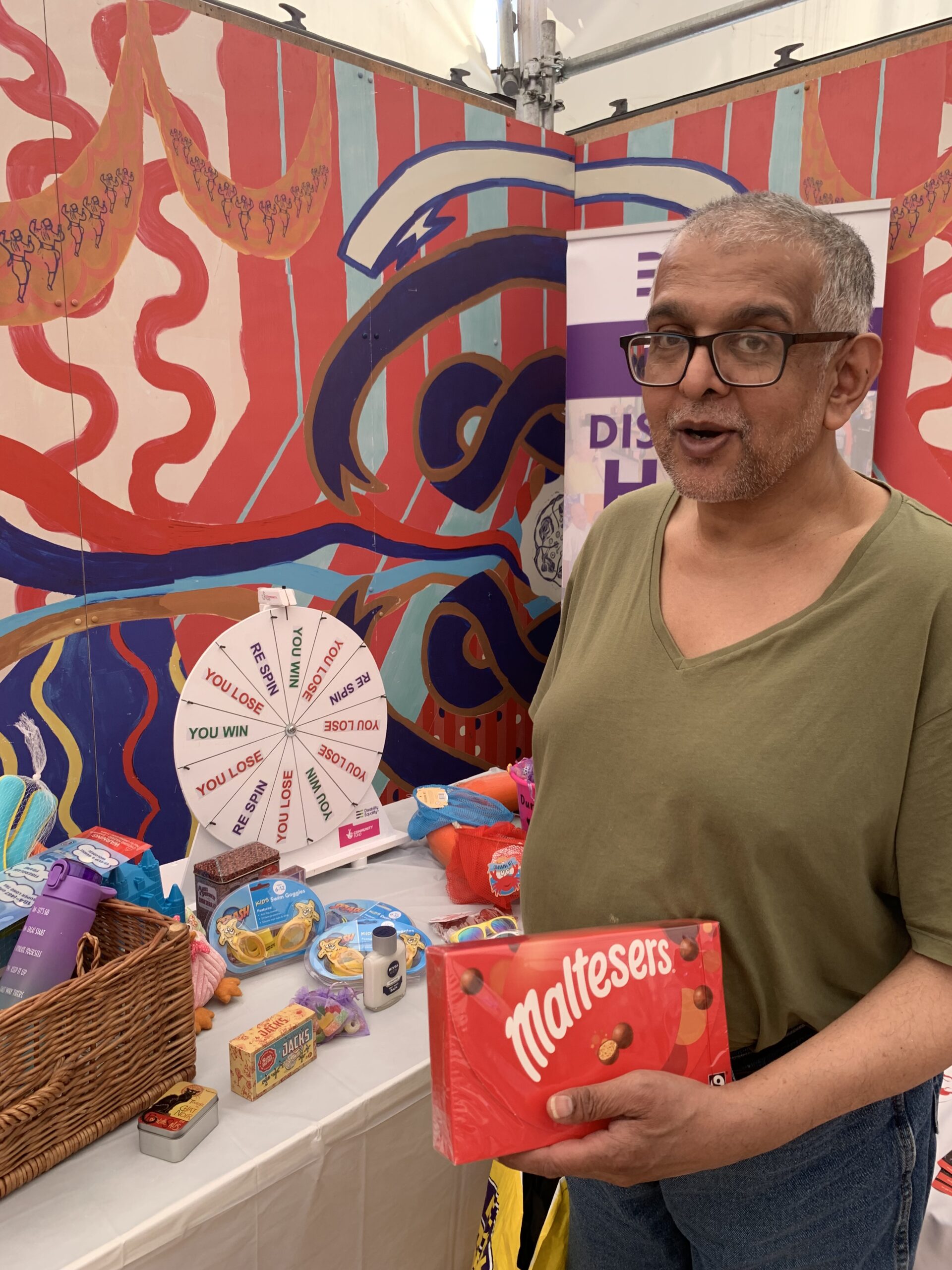 - Peter S DENW volunteer winning a prize on Spin the wheel
