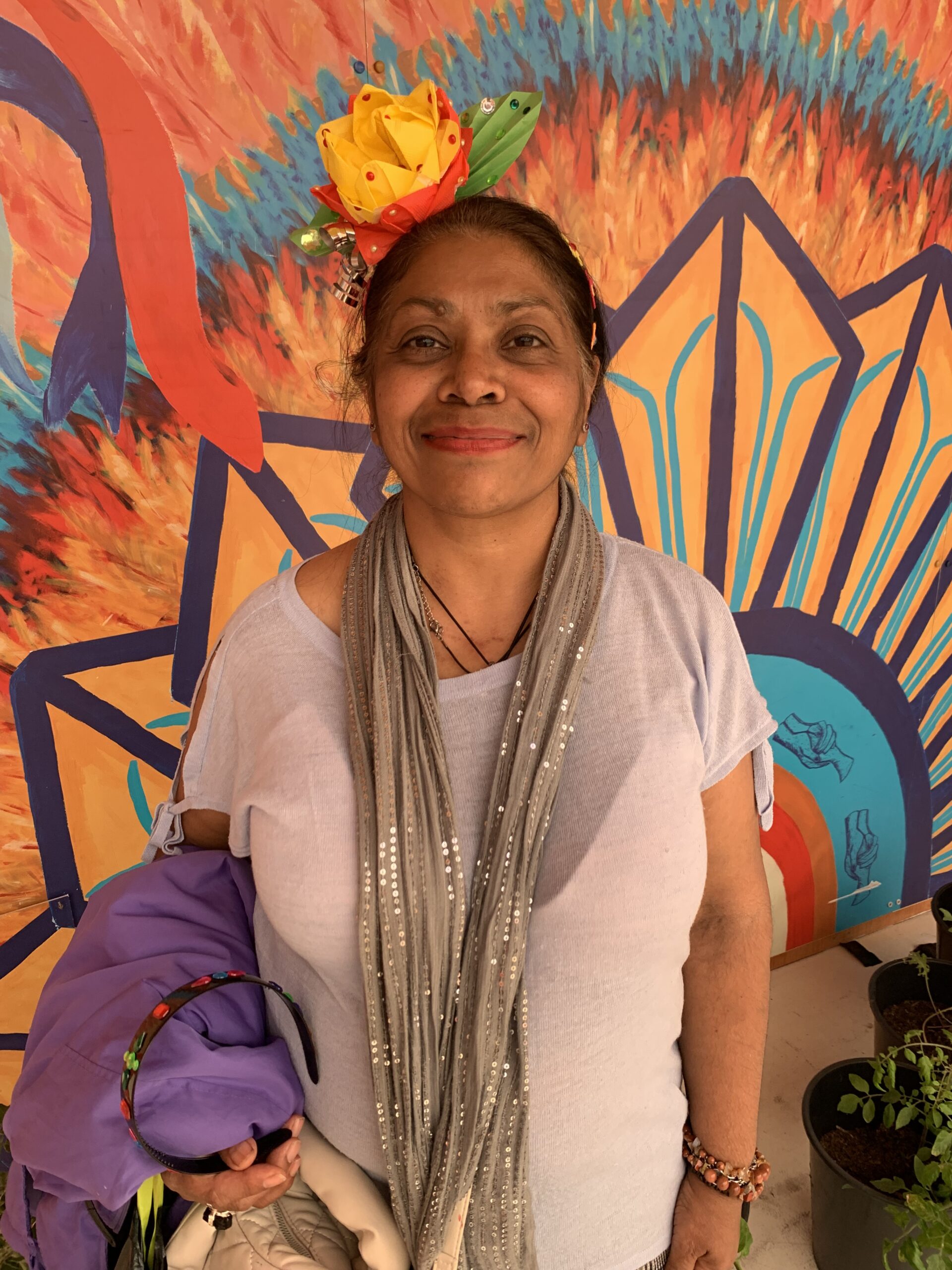 - DENW member wearing the headress she made