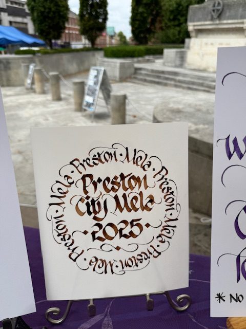 - A beautiful deisgned sign saying “Preston City Mela 2025”