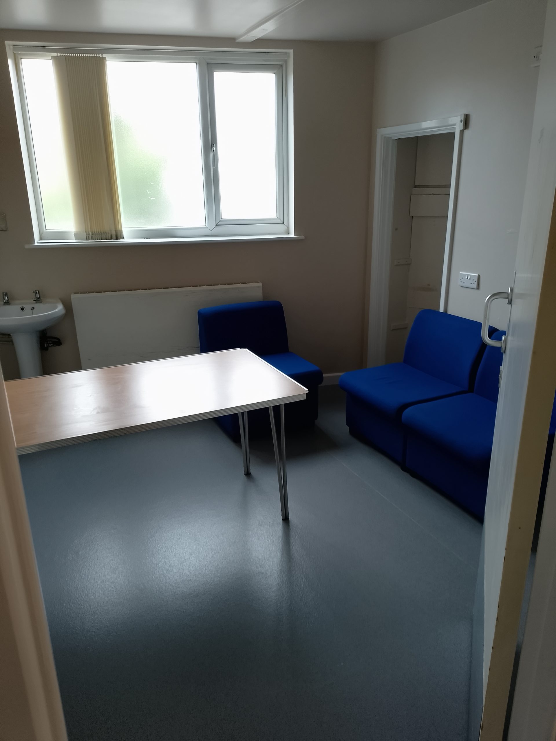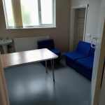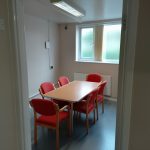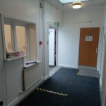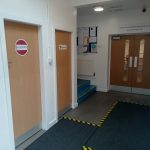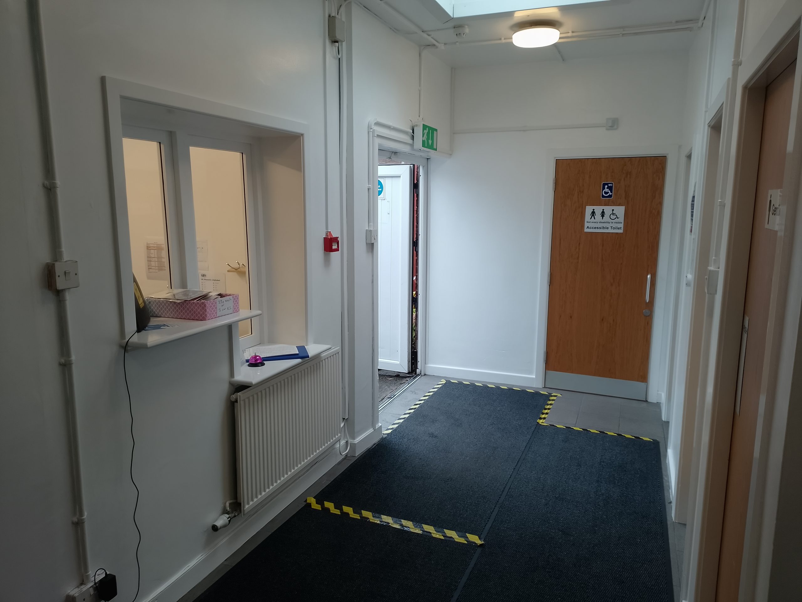 Purpose built accessible hatch installed in reception to help meet and greet visitors and redesigned accessible toilet door now opening outward to give extra space. Accessible toilet not fitted with a visual and audio alarm fitted in case of emergency.